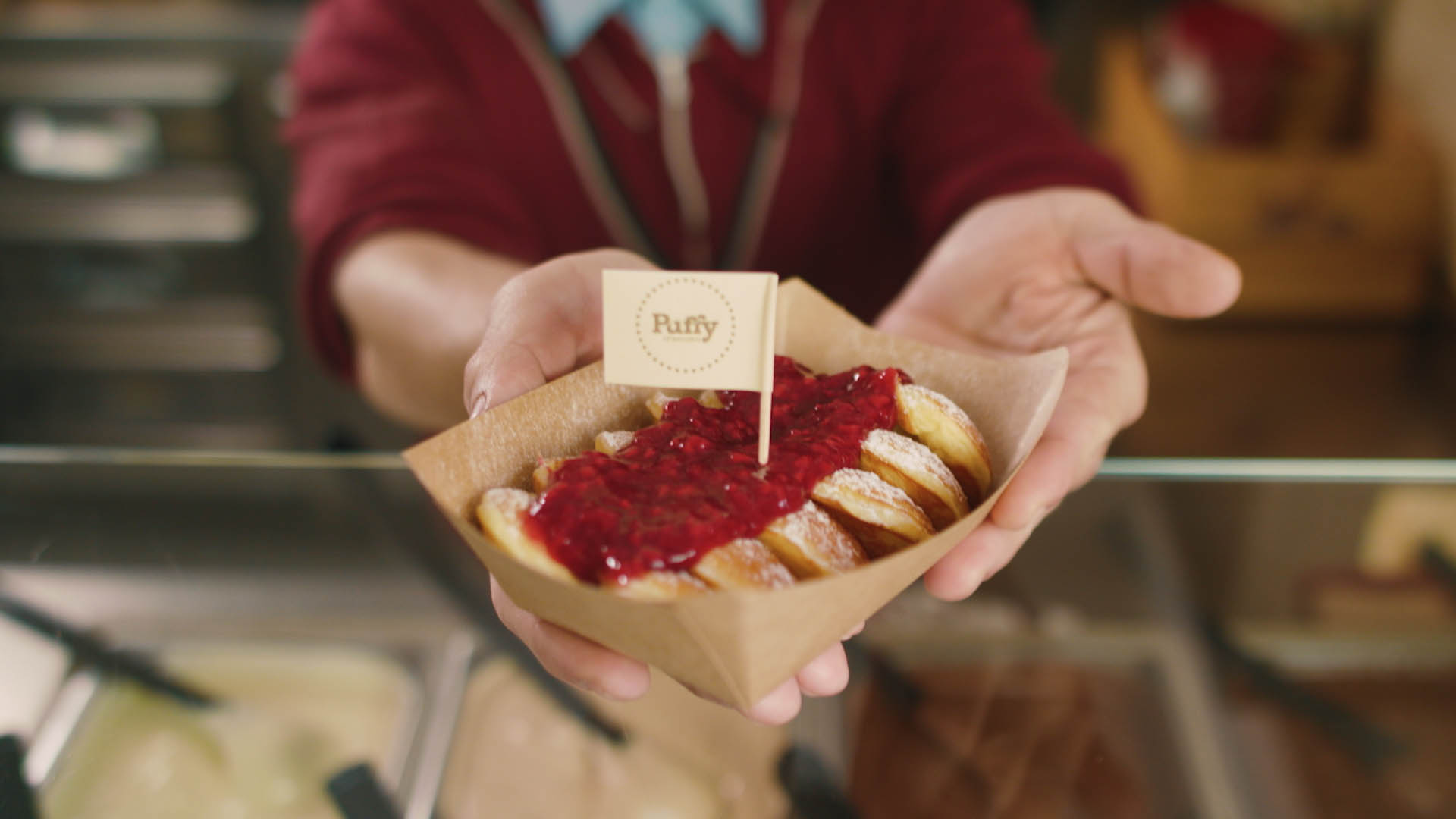 Puffy Lil' pancakes so puhaste palačinke in plod slovenske ideje. Gre za slastne mini puhaste palačinke, ki jih popestrimo z različnimi polivi in posipi, vse od sladke marmelade do kraljeve čokolade.